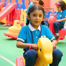 Monarch Pre-School boasts a state-of-the-art infrastructure with colourful and well-ventilated classrooms, a safe outdoor play area, a library, a music room, and an art studio.